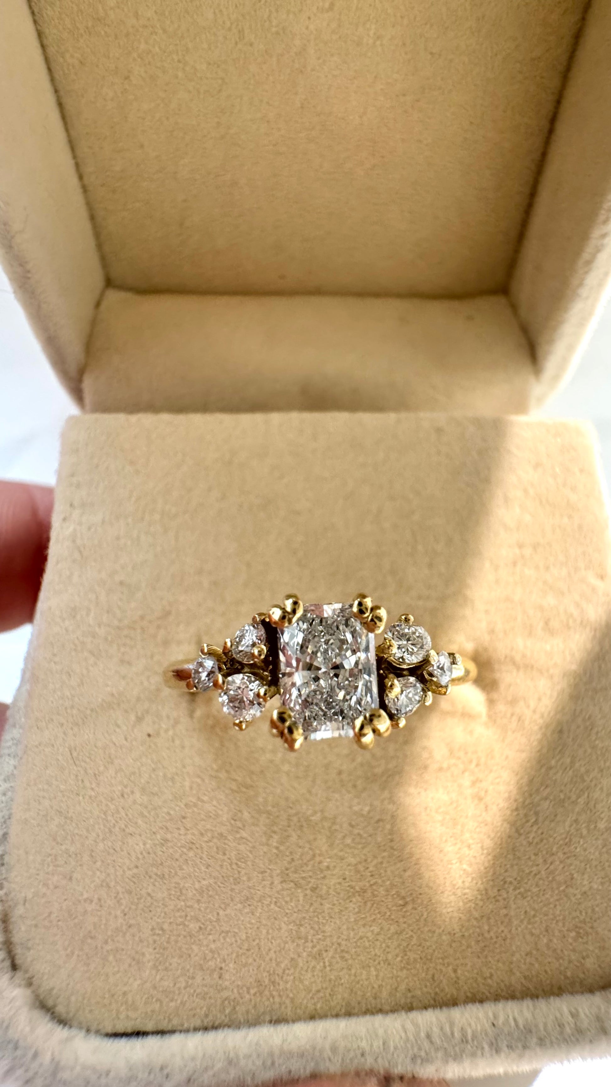 Un gioiello delicato e raffinato, l'anello Infinity Love  in oro giallo 18 carati è un'elegante espressione di luminosità.  Il diamante  naturale taglio Radiant é impreziosito da diamanti naturali taglio brillante al fine di esaltarne la forma e la luminosità.