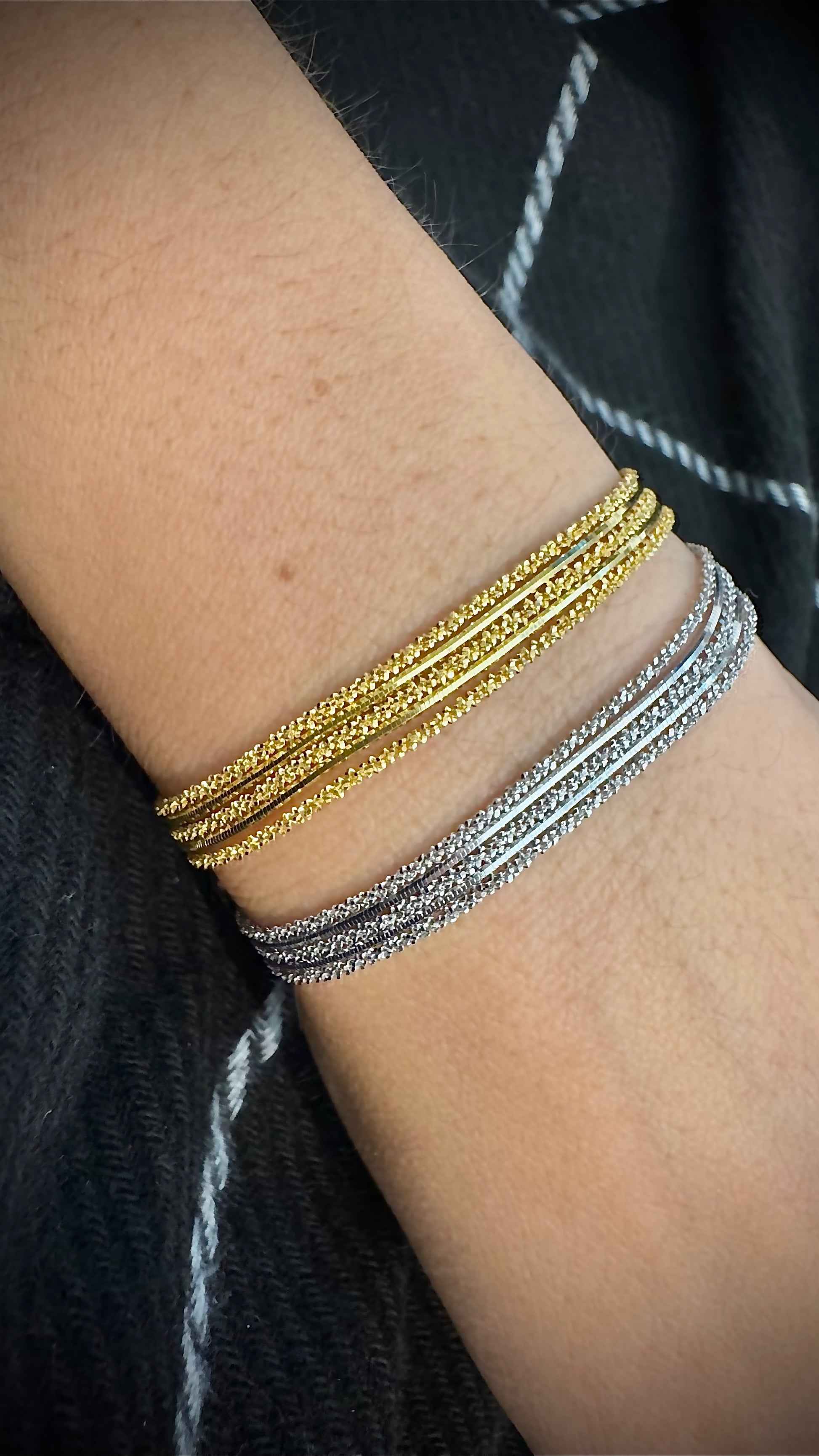 Un gioiello semplice ma di grande impatto, il bracciale Starlight in Argento 925 di Risi Gioielli è perfetto per aggiungere un tocco di glamour al tuo look. La texture delicata conferisce al bracciale una lucentezza sofisticata e un aspetto contemporaneo, ideale per essere indossato sia da solo che abbinato ad altri accessori.