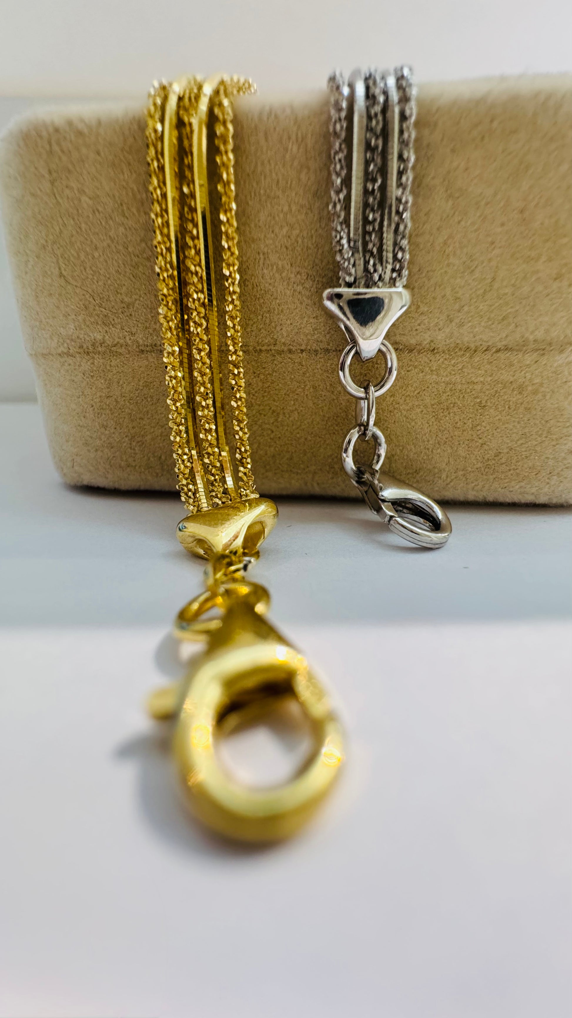 • Design: Il bracciale è caratterizzato dall’unione di 5 fili di catene alternate per stile e lucentezza