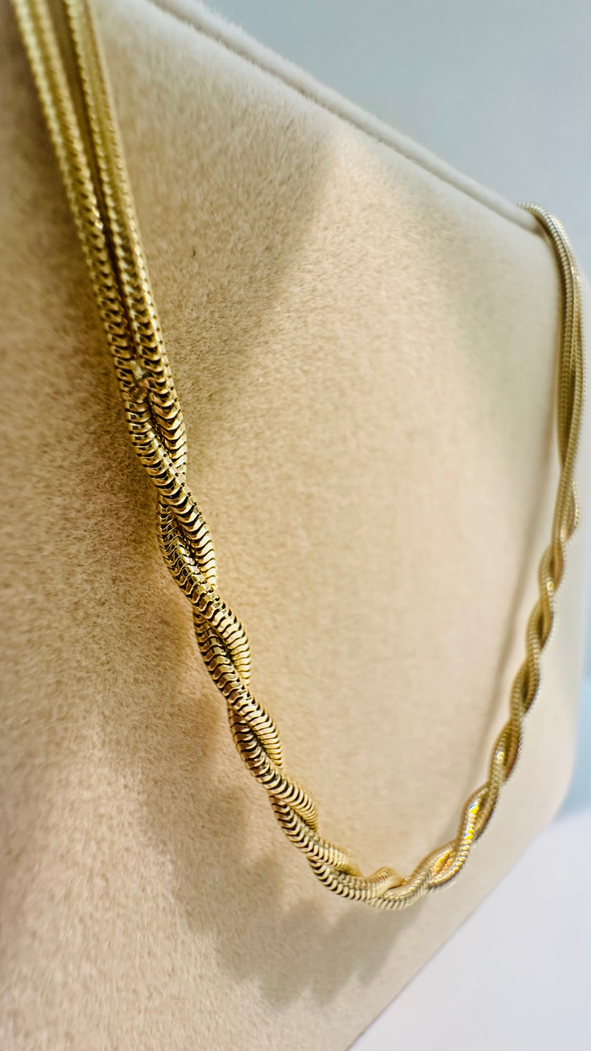 • Design: la collana è caratterizzata da un intreccio di due tubi che forma una corda solo nel centro della lunghezza di 8,5 cm