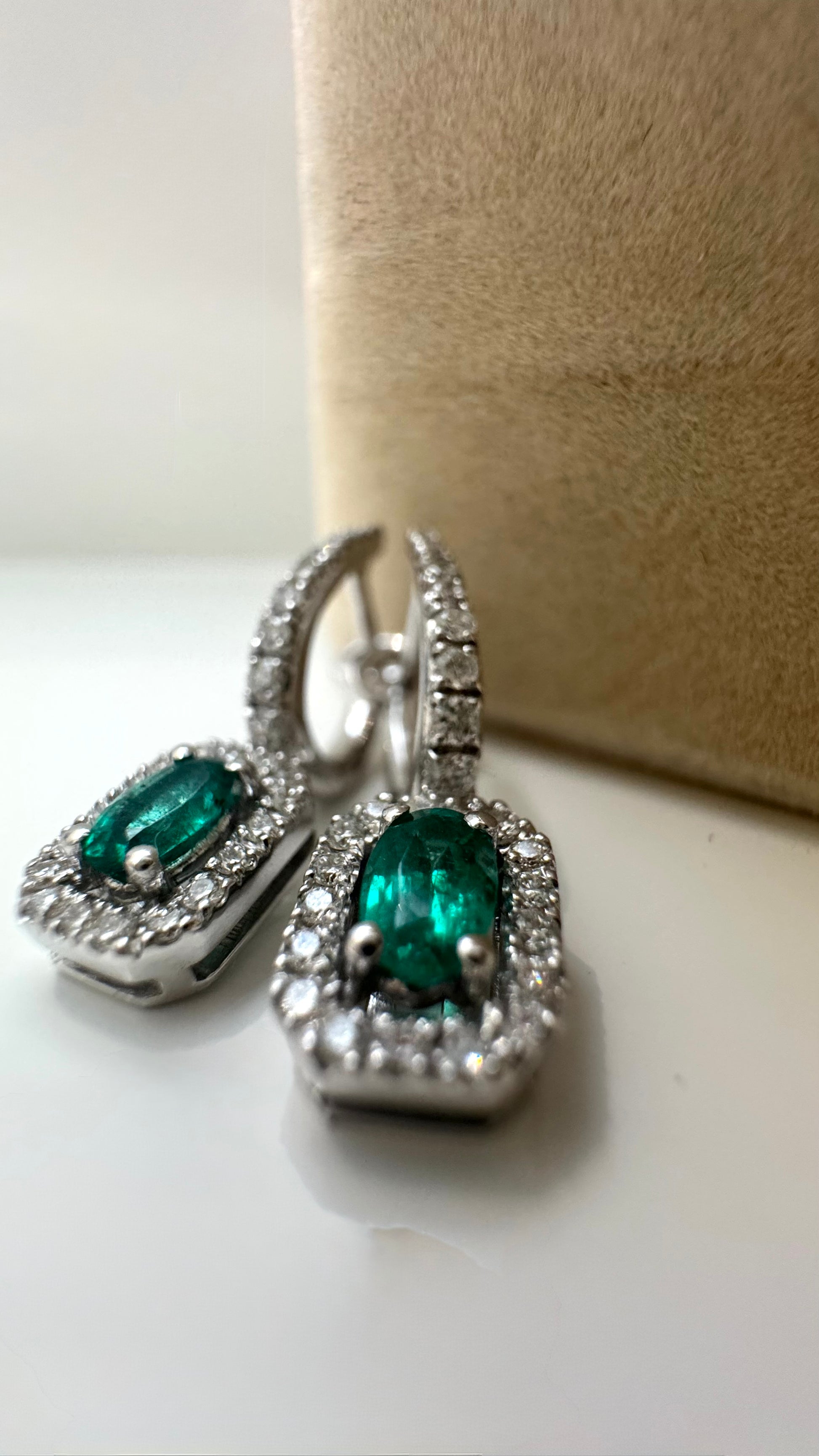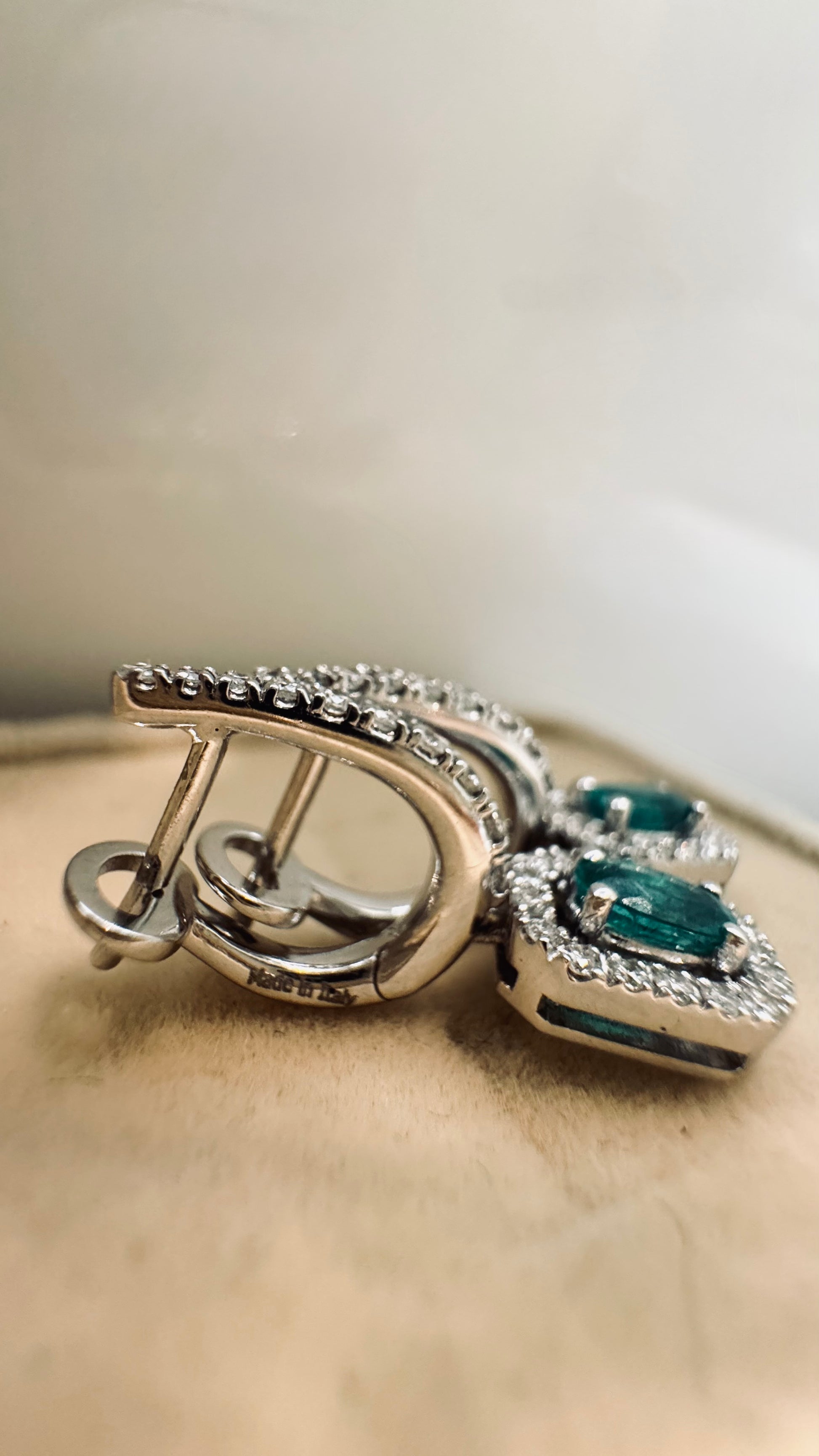 Un orecchino dal sapore un po’ vintage che esalta la bellezza e il colore dello smeraldo.